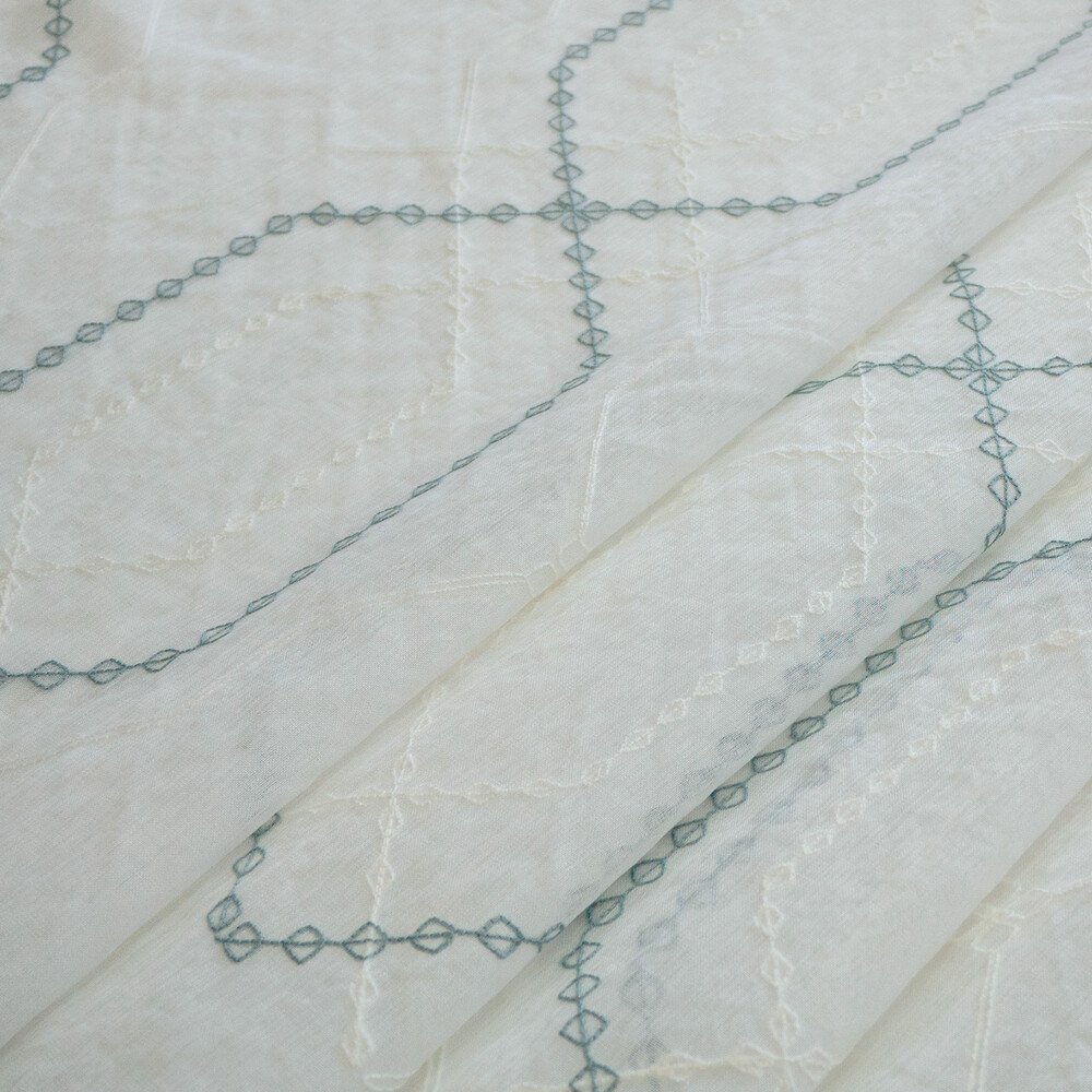 Австрийская штора лён кашемир голубой, карниз верёвочный