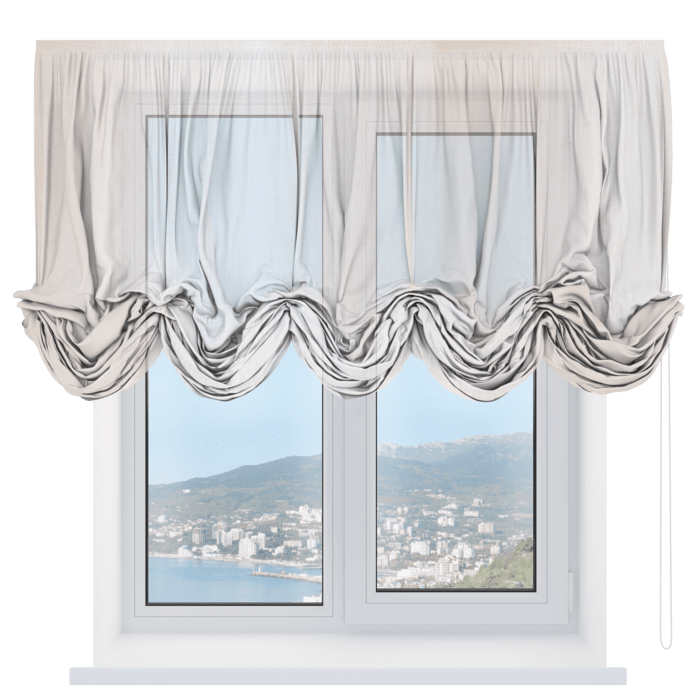Австрийская штора лён кашемир серый, карниз верёвочный