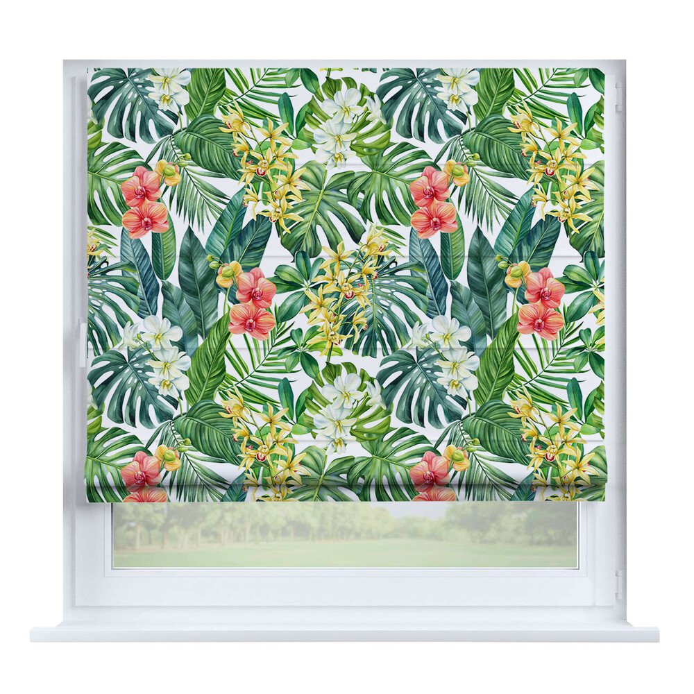 Римская штора для проёма лён димаут тёмно-зелёный, карниз верёвочный
