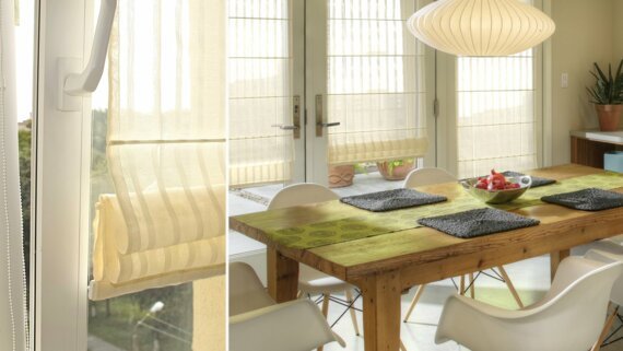 Римская штора на створку лён топлёное молоко, карниз верёвочный